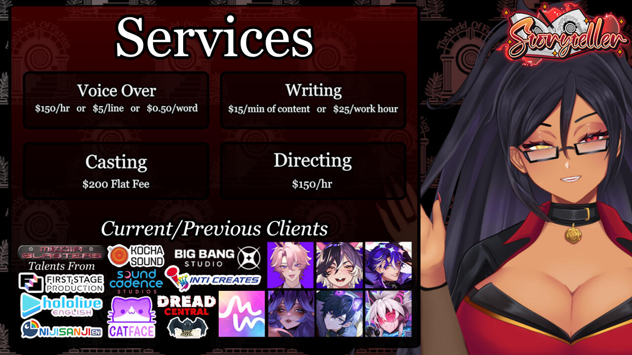 Published Writer. Award-Winning ADR Director. Professional Voice Actor. Singer. Lyricist. Script Adaptor. Game Developer. VTuber. Content Creator.